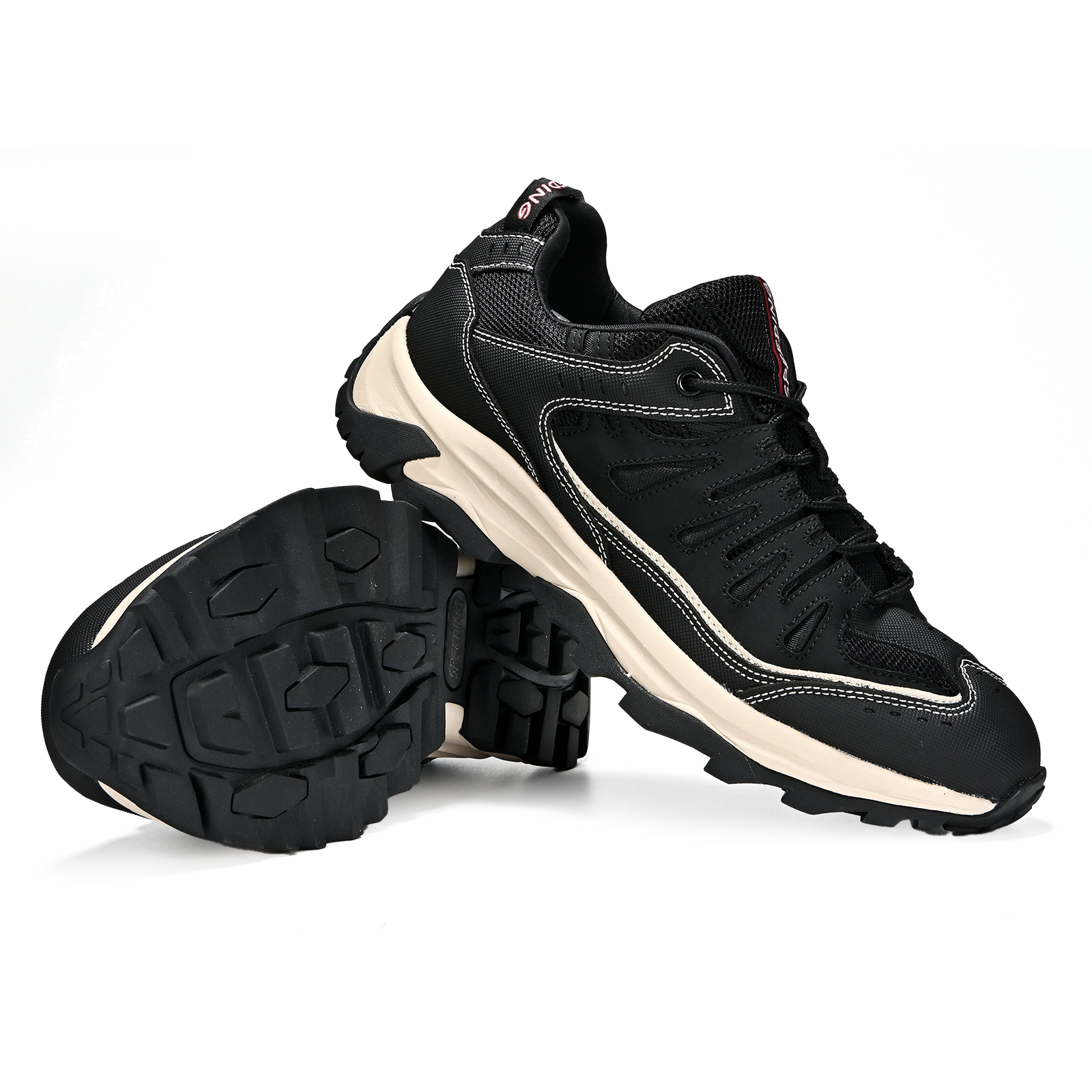 Built for the modern explorer, these men’s hiking shoes combine rugged performance with everyday style. Featuring a bold black-navy color block, breathable mesh panels, and an aggressive deep-lug sole, they’re engineered to handle forest trails, rocky slopes, and muddy paths while keeping your feet supported and secure. Whether you’re on a day hike, weekend camping trip, or just running errands, this pair is your go-to for durability, grip, and all-day comfort.