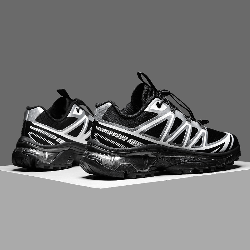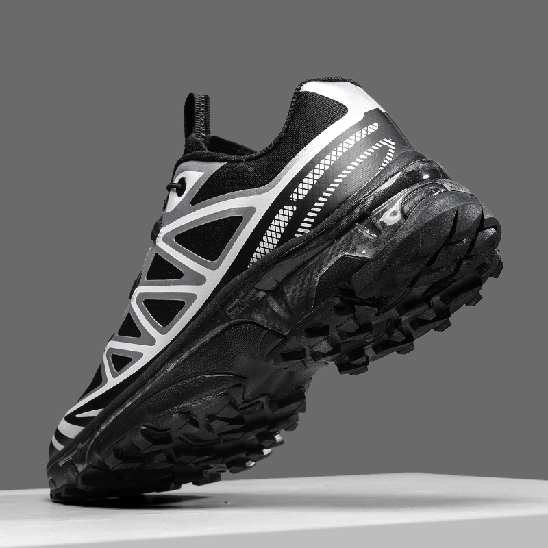 The sleek black design paired with eye-catching red-and-white laces creates a bold, modern look. They transition seamlessly from the wilderness to urban streets, so you can wear them hiking, running errands, or hanging out with friends.