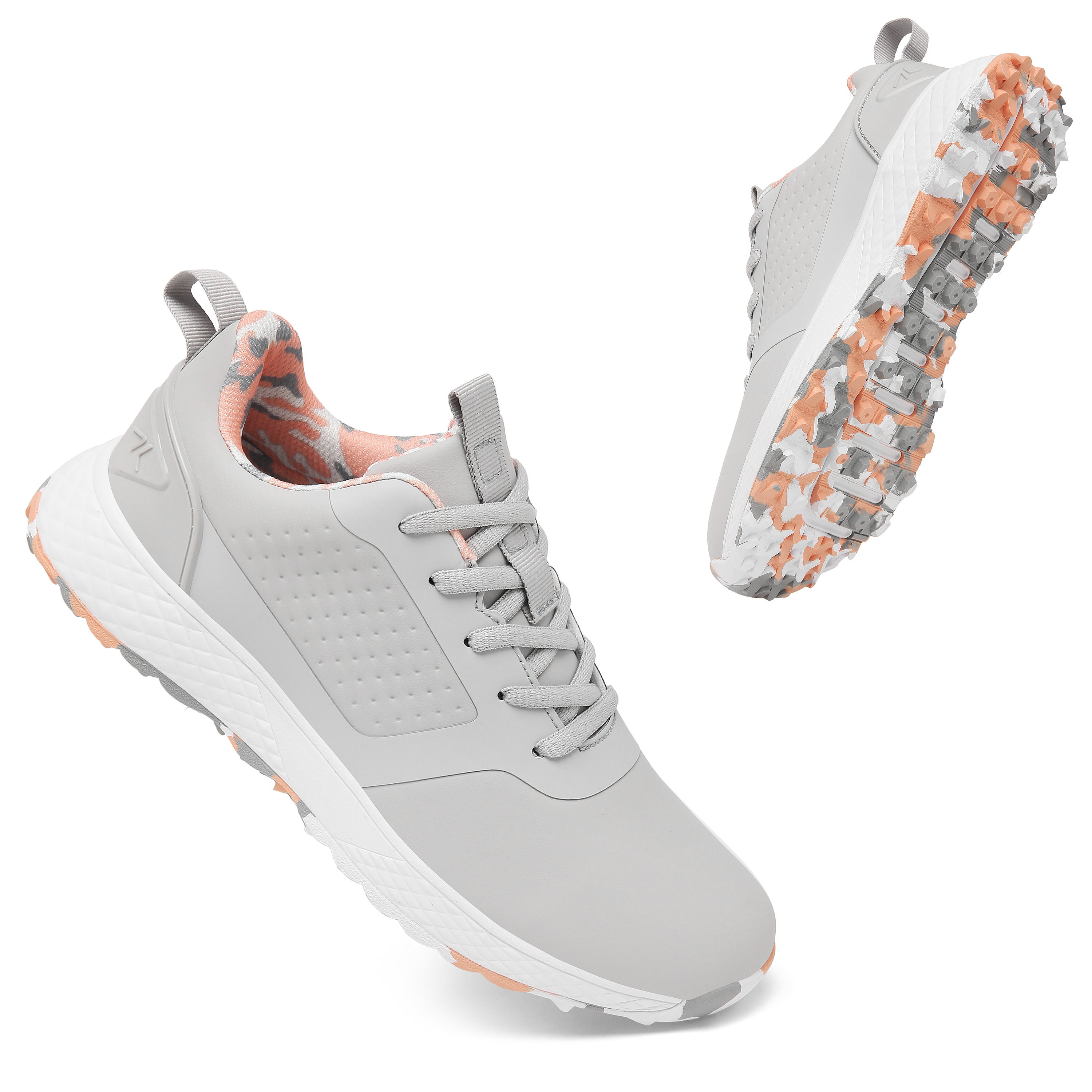 These women’s golf shoes feature a lightweight, breathable flyknit upper that enhances air circulation and keeps feet cool and dry during long rounds. Engineered for golf-specific comfort and stability, they offer soft cushioning, a supportive fit, and a non-slip spikeless outsole for reliable traction on grass and turf. Waterproof and durable, they perform well in all weather conditions while maintaining a sleek, athletic silhouette. Ideal for casual practice and competitive play, they blend all-day comfort, functional performance, and modern style for female golfers.