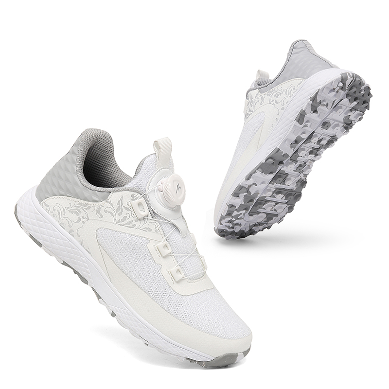 These women’s golf shoes feature a lightweight, breathable flyknit upper that enhances air circulation and keeps feet cool and dry during long rounds. Engineered for golf-specific comfort and stability, they offer soft cushioning, a supportive fit, and a non-slip spikeless outsole for reliable traction on grass and turf. Waterproof and durable, they perform well in all weather conditions while maintaining a sleek, athletic silhouette. Ideal for casual practice and competitive play, they blend all-day comfort, functional performance, and modern style for female golfers.